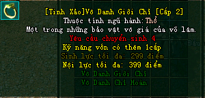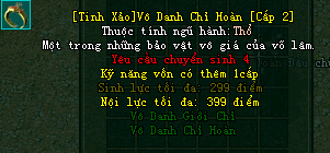 Thông tin: dùng để nâng cấp trang bị Nhẫn Tinh Xảo Vô Danh